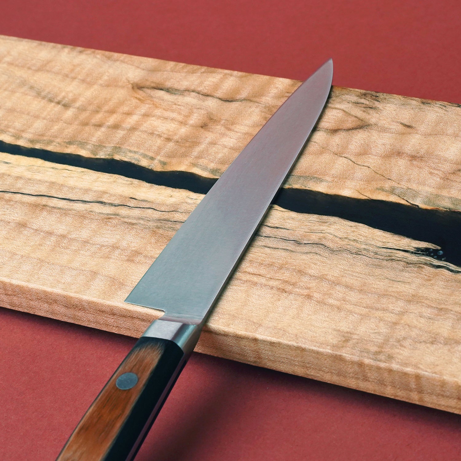 I've personally displayed my knives using Knife en Place magnetic blocks for years. Imagine my delight when the owner agreed to make a limited run of collaborative pieces in instrument-grade maple and black epoxy