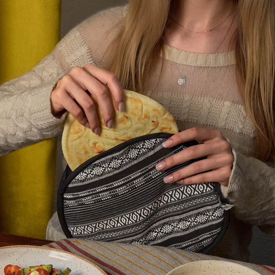 With its fabric exterior and insulated polyester interior liner, these tortilla warmers keep flatbreads up to 12 inches in diameter warm and fresh for an extra hour.